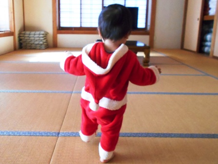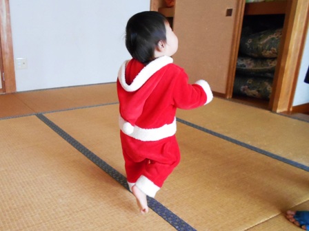 孫のハクちゃんが、サンタクロースの格好をして、やってきました。
