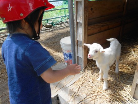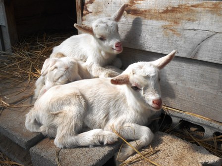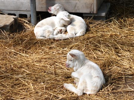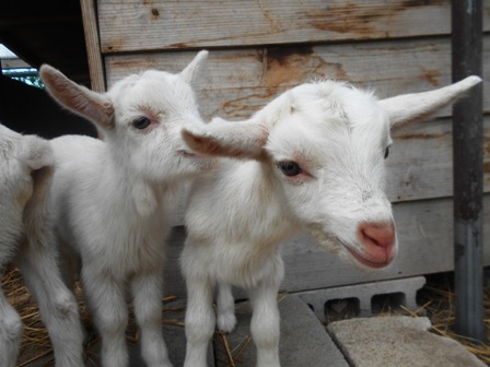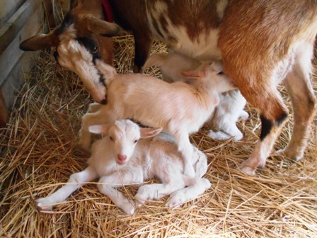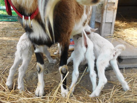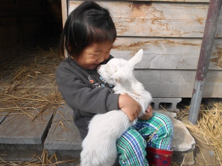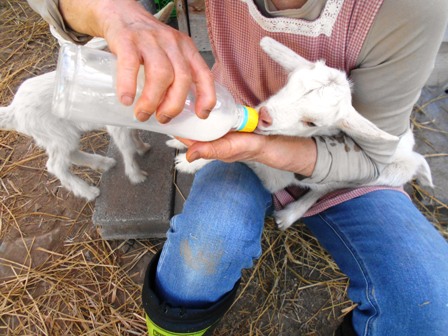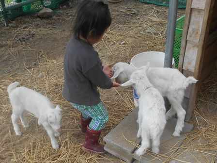 女将のブログ / 2024年5月12日 子ヤギ誕生から3日目・4日目 孫のハクちゃんとも初対面 ヤギのおっぱいは2つしかないのでですが、母ヤギのハナちゃんは順番に与えてくれています 念のため、哺乳瓶でミルクをあげる練習もしてみました
