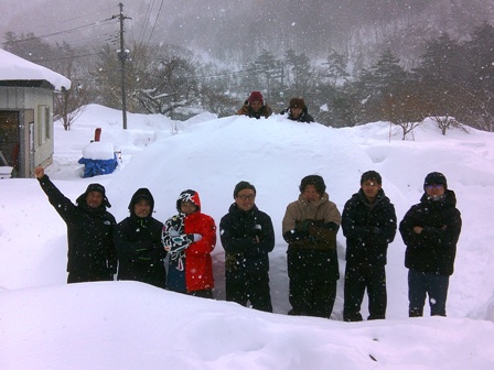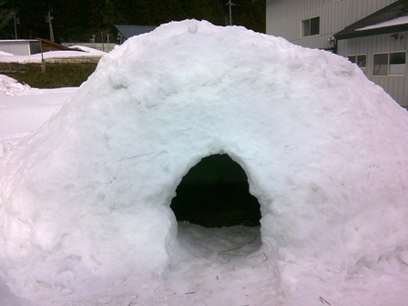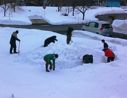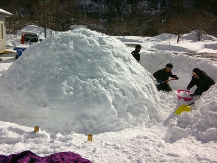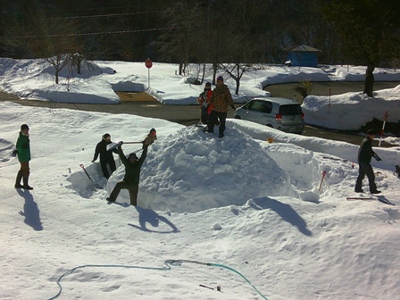 先発で早朝に到着したおとうさんたちは、早速かまくら作りを開始