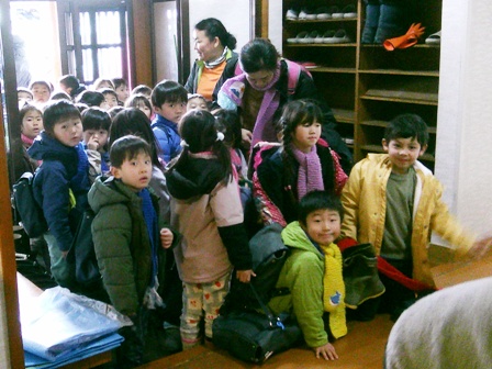 子供たちは電車と新幹線とバスを乗り継いでやってきます