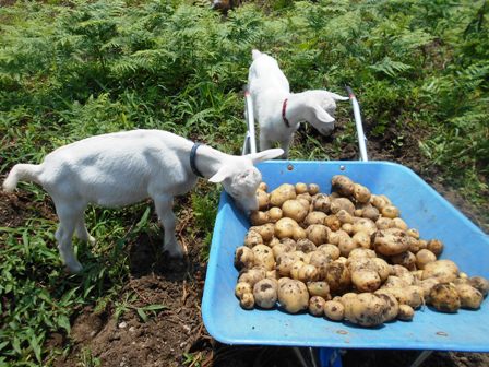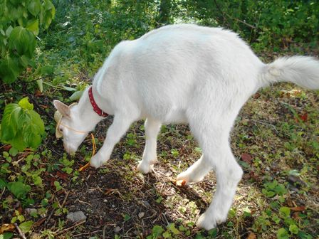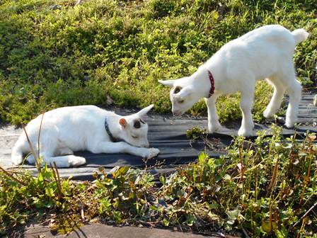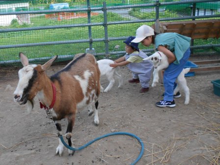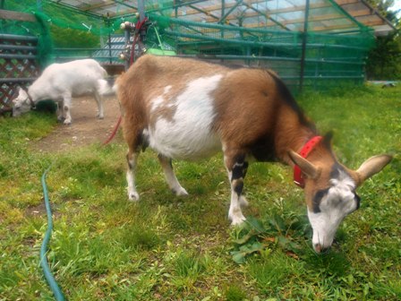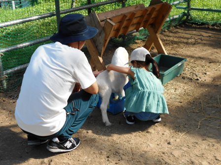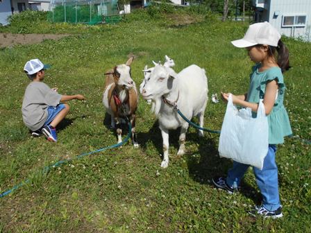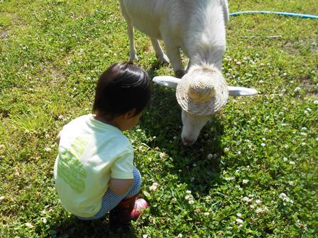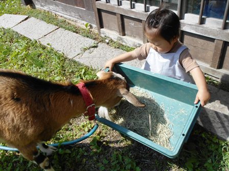 ヤギさんが大好きなハクちゃんは、ヤギさんのお世話も一所懸命してくれます。