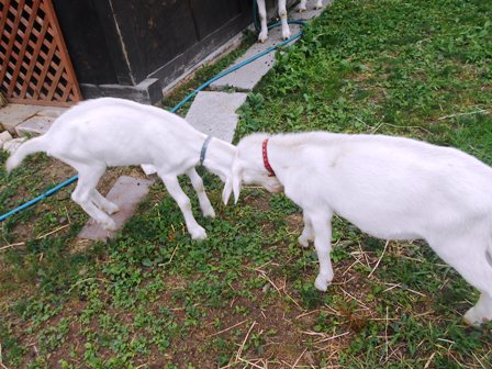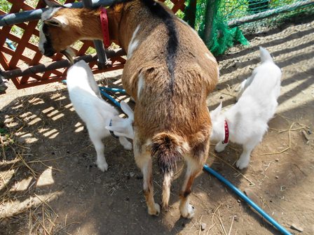もうすぐ生まれて2か月になる子ヤギたちは、だいぶ大きくなりました。