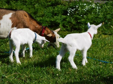 1か月前に大きなお腹でやってきたハナちゃんが、6月8日(木)に双子の子ヤギを無事に出産しました。