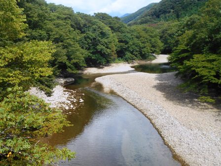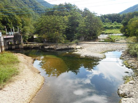橋から見た上流側 水量がかなり減っています