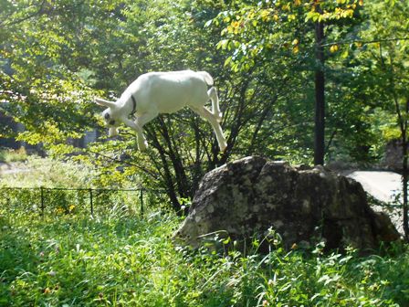 子ヤギのアオちゃん。みんなで散歩の途中で岩に登って遊んでいます。