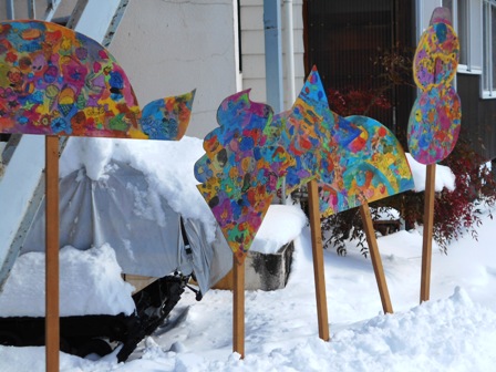 道しるべのローソクは子供たちが作ったものだそうです。