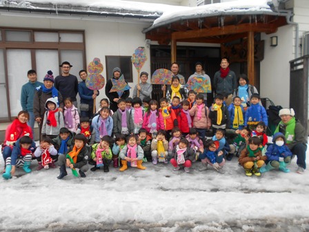木更津社会館保育園の雪国保育が帰っていった翌日、以前、雪国保育でみちのくに来たことのある子供たちとそのご家族6組が、お泊りに来てくださいました。