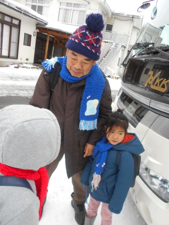 お父さんたちに見送られて、帰っていきました