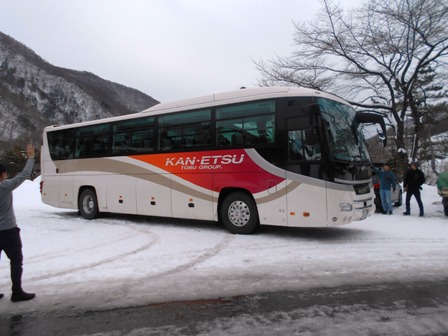 手の消毒をしてバスに乗り込みます